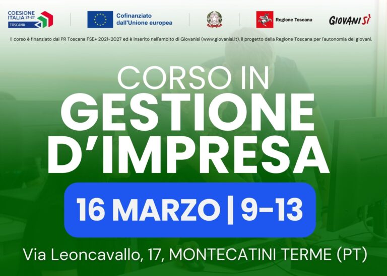 I corsi sono finanziati dal PR TOSCANA FSE + 2021-2027 Asse 4 Attività 4. F. 2 e Inseriti nell’ambito di Giovanisì (www.giovanisi.it), il progetto della Regione Toscana per l’autonomia dei giovani.